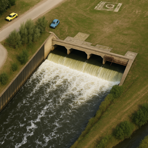 Der Kühlwasserauslauf ist die Austrittsstelle, an der das im Kühlprozess erwärmte Flusswasser aus dem Kühlsystem eines Rechenzentrums wieder in den Vorfluter (z. B. Fluss oder Kanal) zurückgeführt wird.